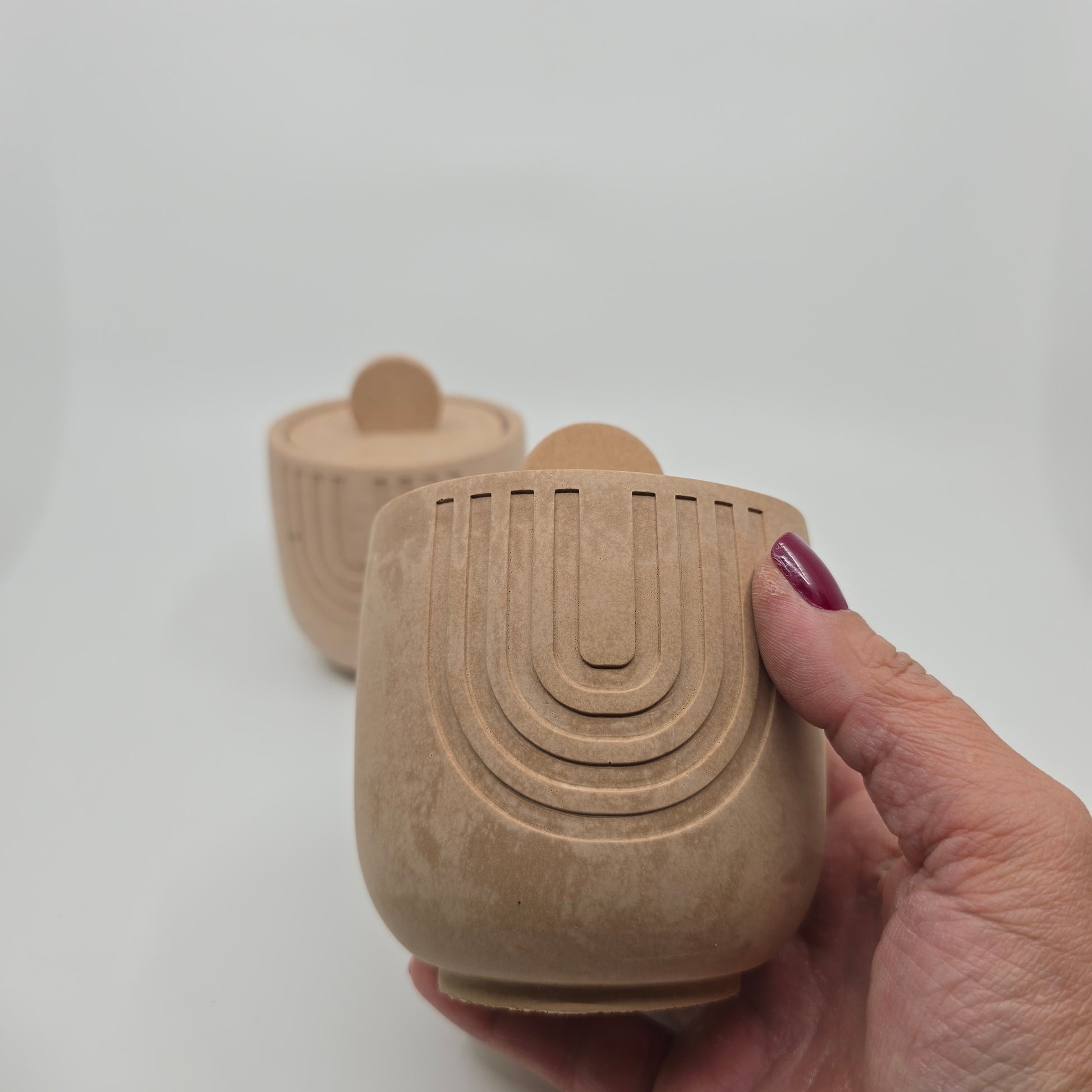 Minimalist yet playful in form, the Lys Jar is perfect as a decorative container for small treasures, or it can be filled with a candle for an additional cost.