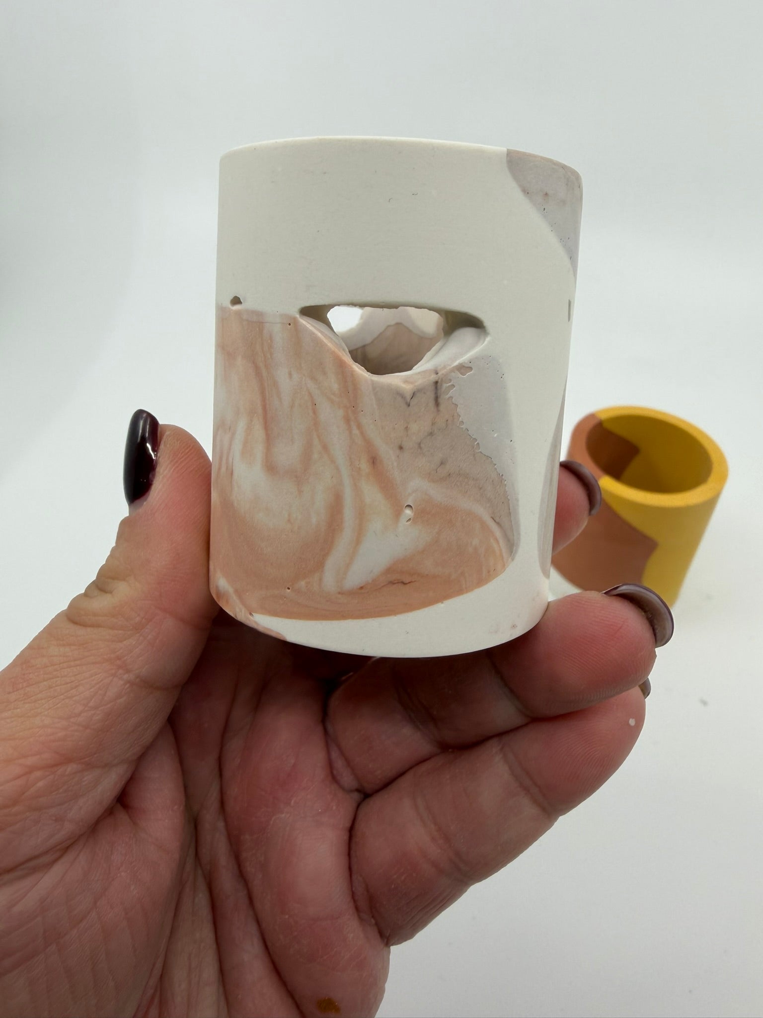 A minimalist jesmonite match holder designed with an integrated striker surface on the side, allowing you to light matches directly on the piece. Both functional and decorative, it works beautifully next to candles, fireplaces, or as part of a styled tray.
