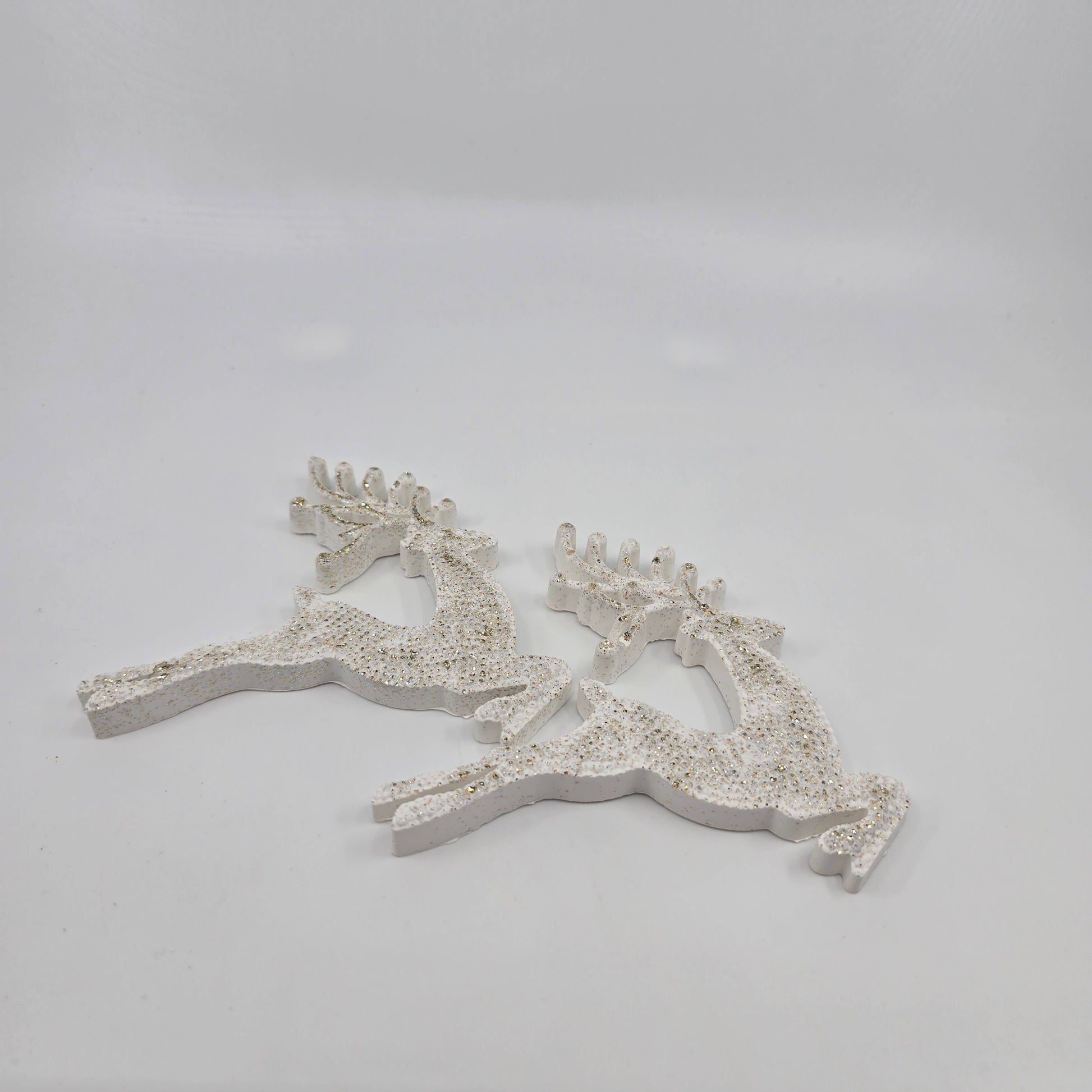 Elegant reindeer ornament with shimmering golden details, designed to bring festive cheer to your Christmas décor. Since one of the antlers has a small broken part, this piece is offered at a special discounted price.